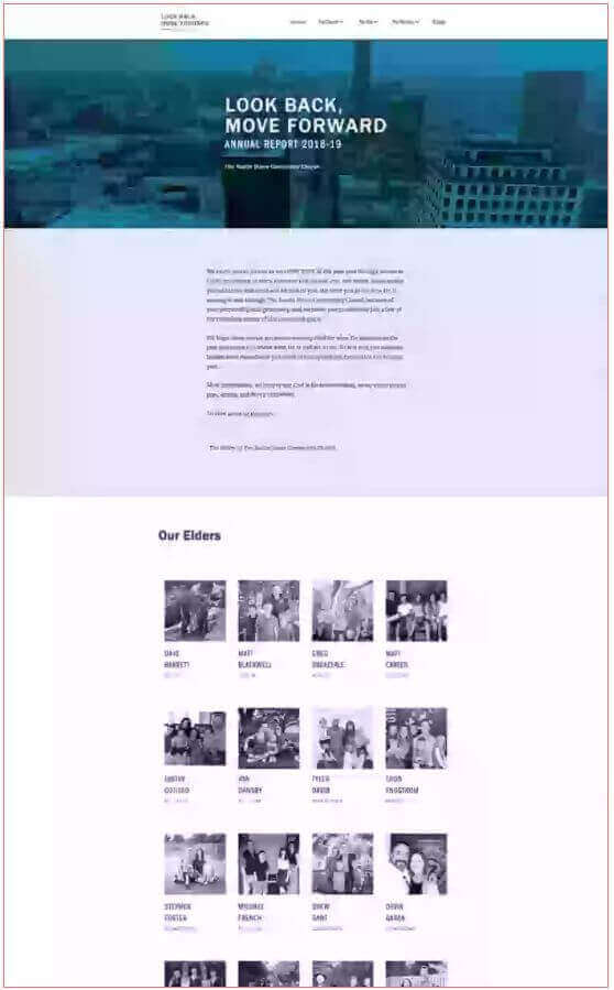 Extra Note: One of the most commonly searched examples of a unique annual report is Elevation Church’s annual report. However, while theirs can be quite fantastic, they set the bar pretty high right from the get-go, and I don’t want to give you unrealistic that you can’t accomplish on your own. I’m going to include it as a note here and focus on some more realistic reports that were still handled really well in my examples.