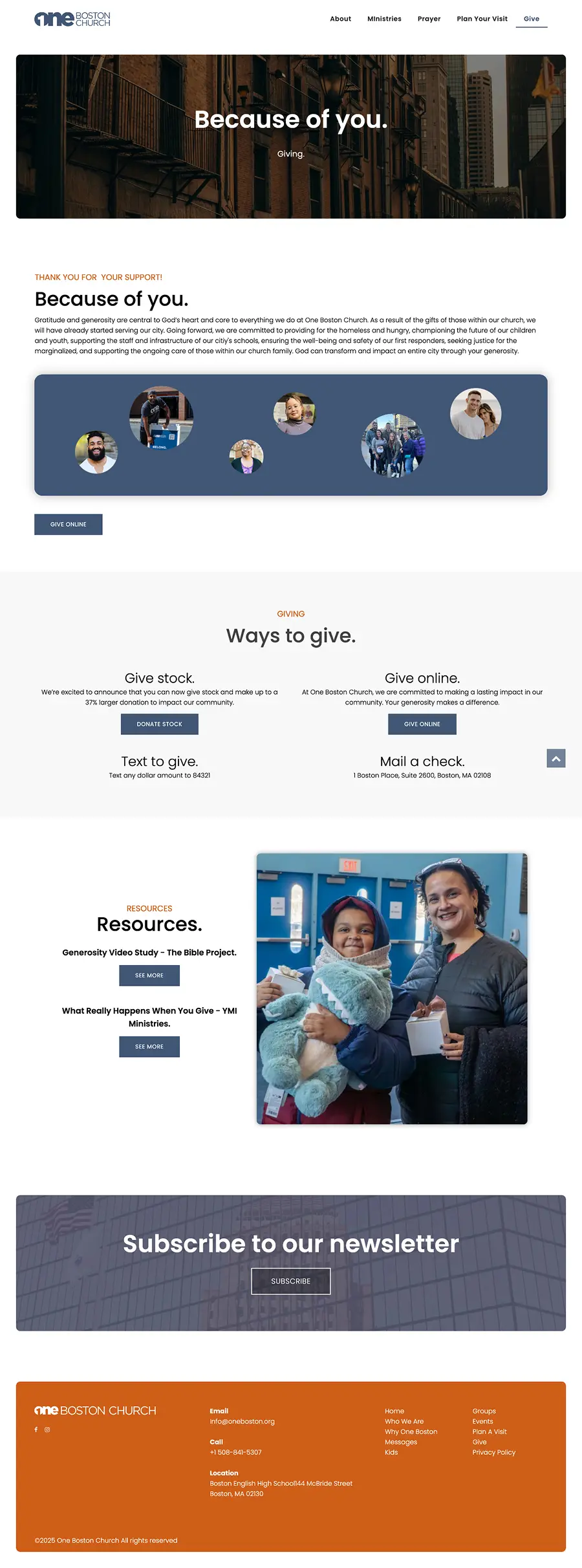 We know every church is different — and so are your giving tools. Our builder doesn’t lock you into a single provider. Instead, you get full control over how and where online giving is featured on your site.